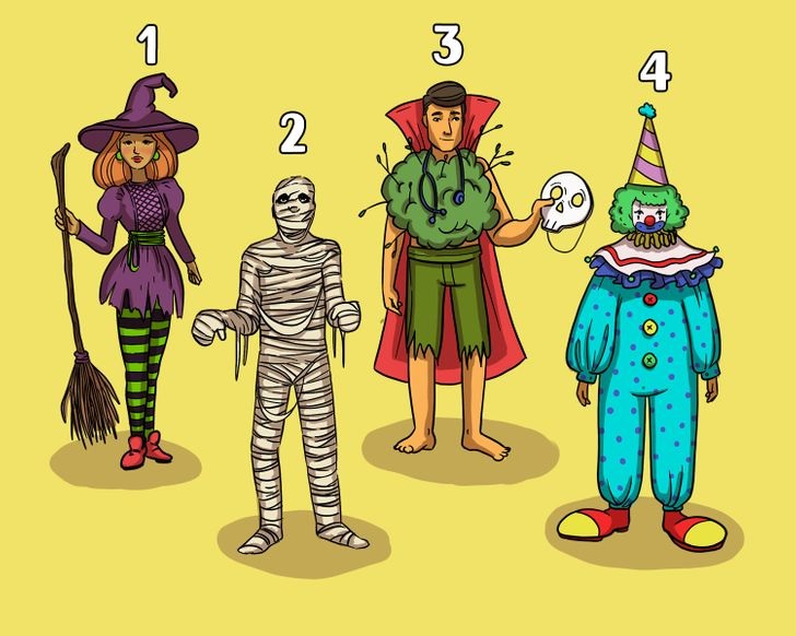 The person who committed the crime is the third suspect! If you look at others’ costumes, you will see that they are all complete and well-made. Clearly, suspects number 1, 2, and 4 were preparing their costumes for a long time and they didn’t have time for anything else.