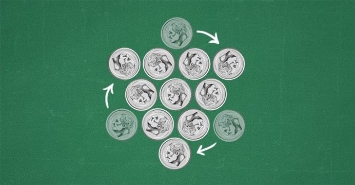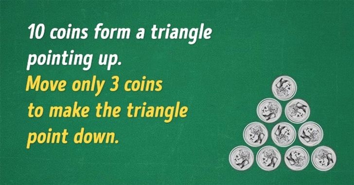 Worry not, here’s another chance for you to prove your skills. This time, try to figure out how to make the triangle below point down by moving no more than 3 coins.