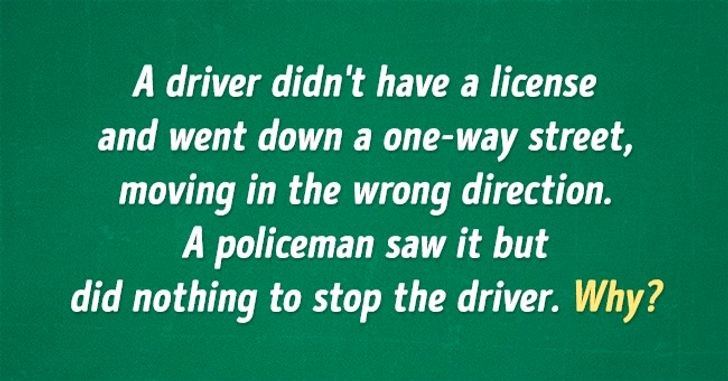 As you can see, a driver without a license went down a one-way street. Even though he was moving in the wrong direction, the police officer who saw him didn’t bother to stop him. Why?