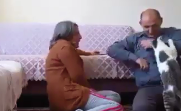 In a video shared here, a husband and a wife wanted to see how their cat is going to react to the situation so the husband came in and pretended to hit the wife. The wife on the same started making crying sounds to enact the attack.