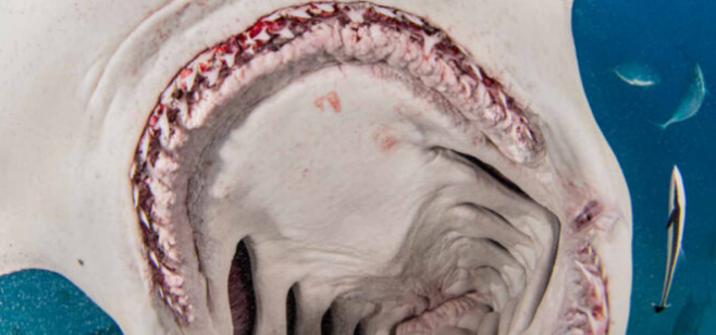 Ken was able to capture the inside of a shark’s mouth and revealed that he had to replace the equipment after taking this picture as it had teeth marks on the camera’s lens.