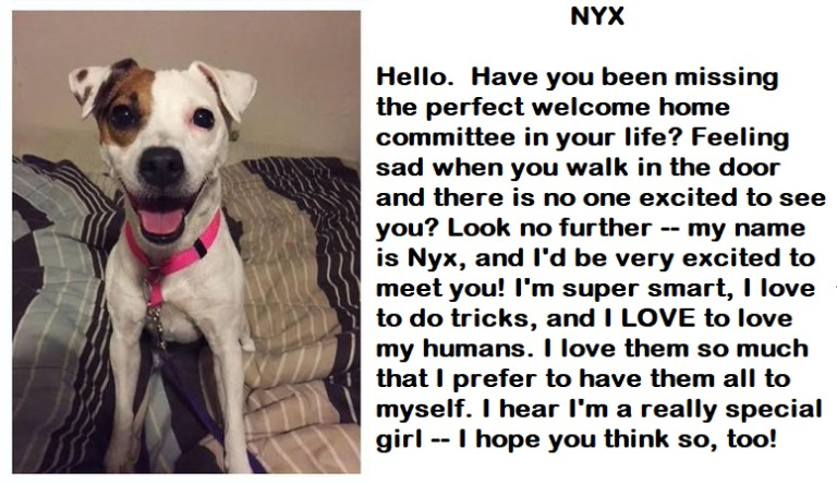 “Five of the dogs are ‘One-der’ dogs that need to be an only pet in the home, one of the dogs, Moby, isn’t a “One-der” but he is older and has some special medical needs that have been a big part of his struggles finding a forever home.”