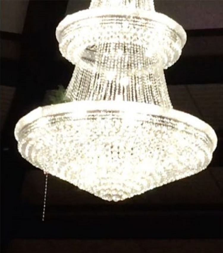 Not only did the bouquet get stuck, it even left a foot-sized section of the chandelier damaged.