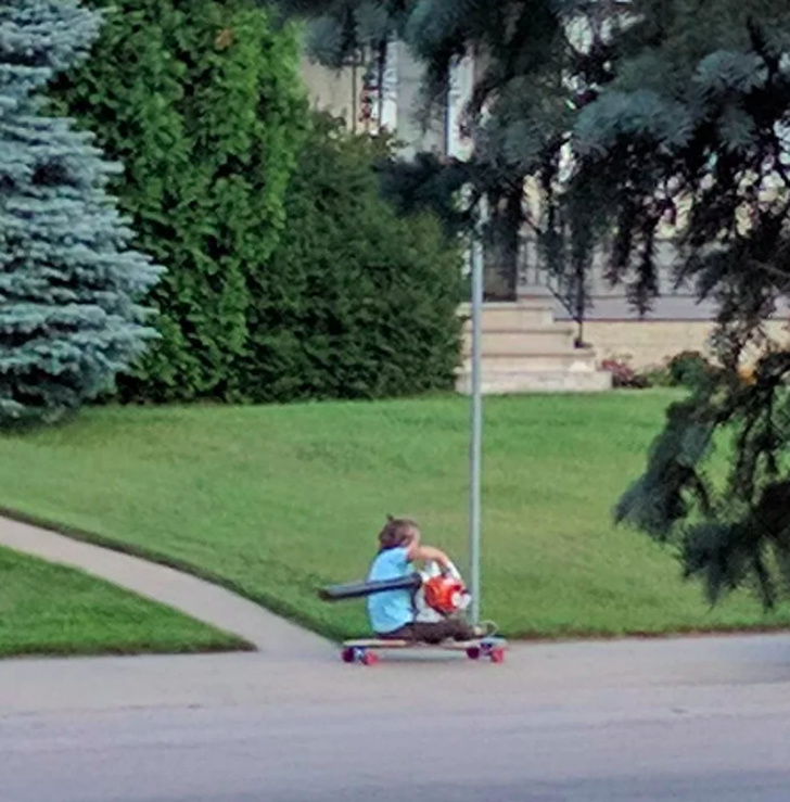 13 “This kid on a longboard using a leaf blower to go fast is now my personal hero”