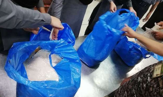 The drug was then collected and emptied in blue colored plastic bags.