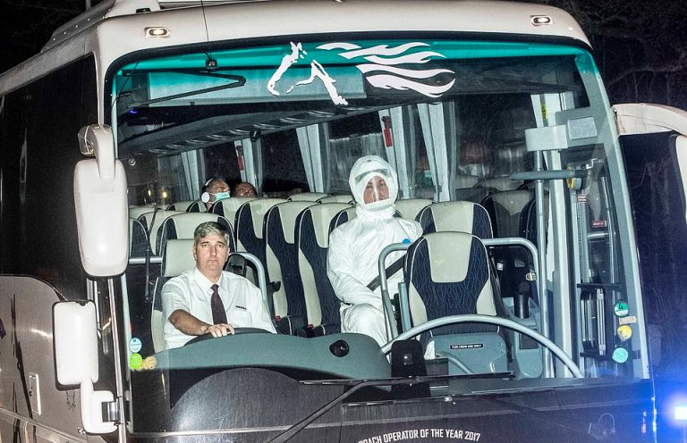 A spokesperson for Horseman Coaches said Government officials assured their staff that they didn’t need to wear protective clothing for the journey as the evacuees had already been quarantined for 8 days in China and allowed on board as they didn’t have any symptoms.