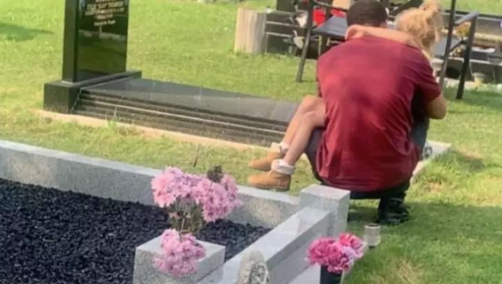 A heartbreaking picture of a little girl hugging her brother as she broke down at their sibling’s grave came out.