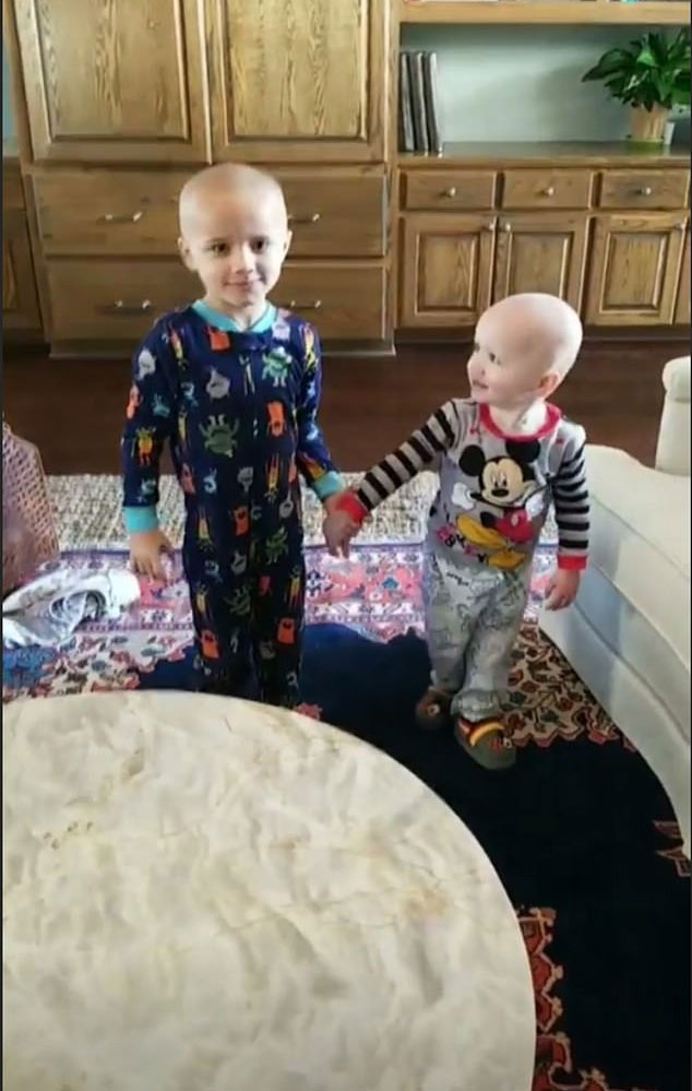 Teddy can be seen with patches of hair missing and when his sister turns around that the damage can really be seen.