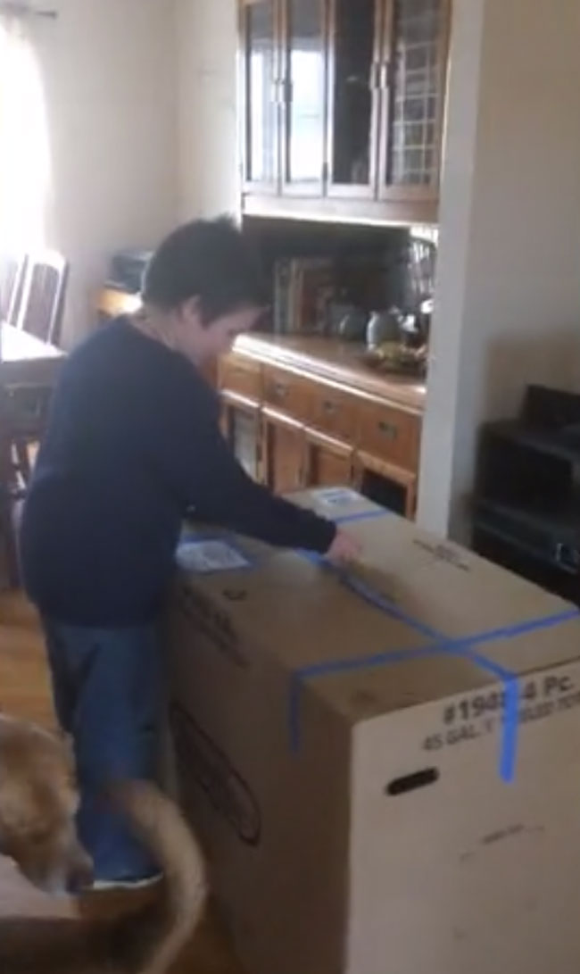 Connor was left confused and started opening the huge cardboard box. Little did he know, his older brother Brad Marek was hiding inside the box.