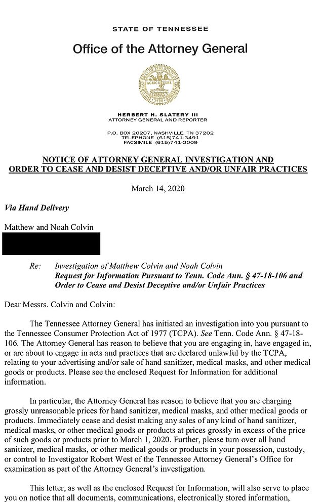 Tennessee-based Matthew and Noah Colvin got involved in what the people have dubbed a profiteering scheme as they spent some $10,000 to $15,000 on 17,700 hand sanitizers.