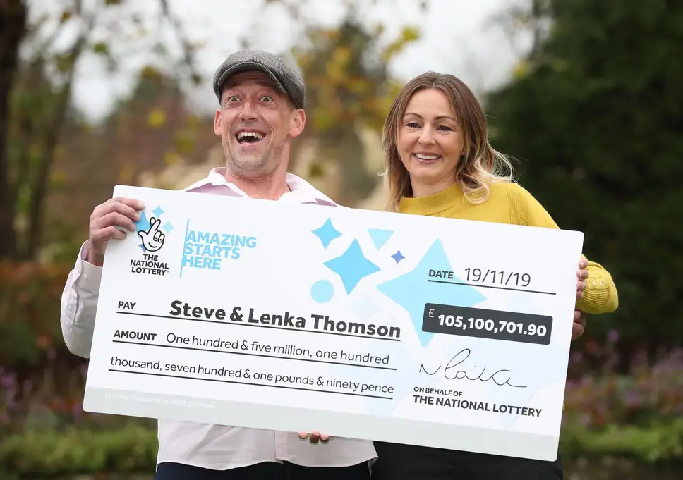 Steve and Lenka Thomson who have been proclaimed as the lucky winner of £105 million ($135 million) prize have also won the title of the ninth biggest amount in the history of the UK Lottery.