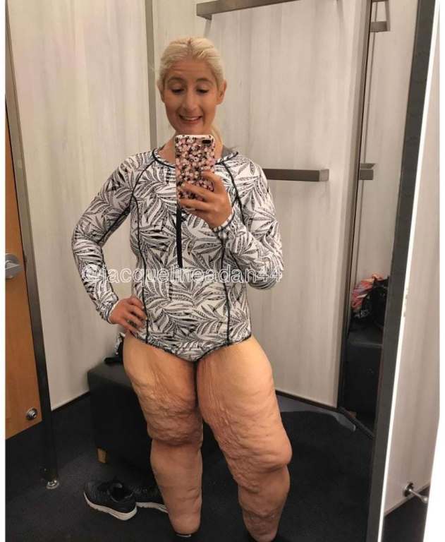 Losing weight quickly causes the skin to become loose as it doesn’t shrink down to the new size of the body. Jacqueline’s skin became looser and looser the more she lost weight.
