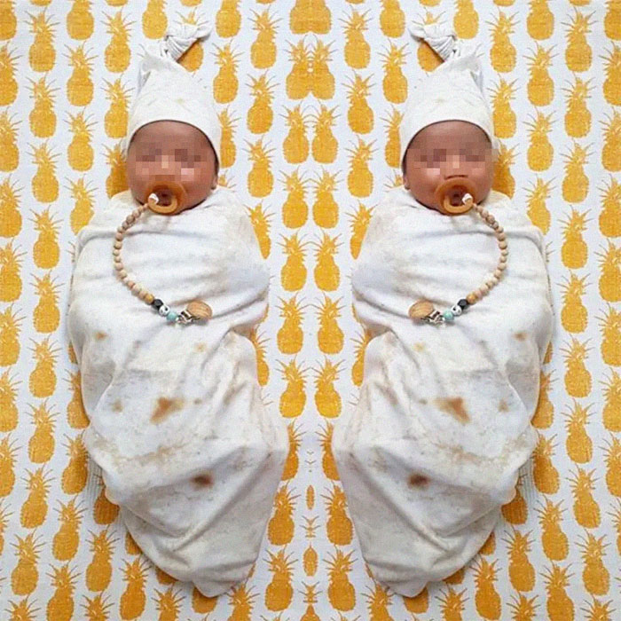 The website is selling the blanket for $15, and it is really warm with a great tortilla look. When the babies are wrapped inside this blanket, it looks like a life-sized burrito which is totally adorable.