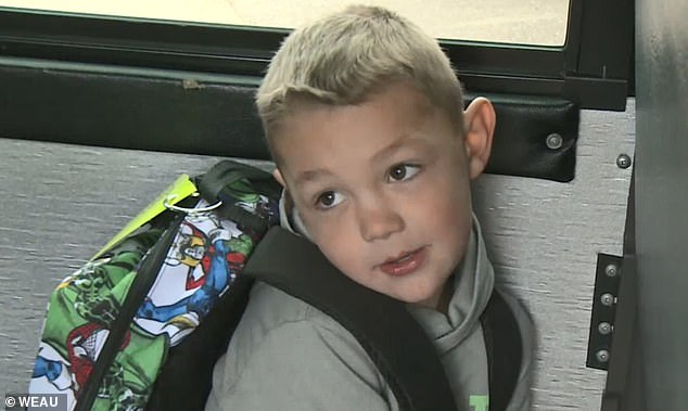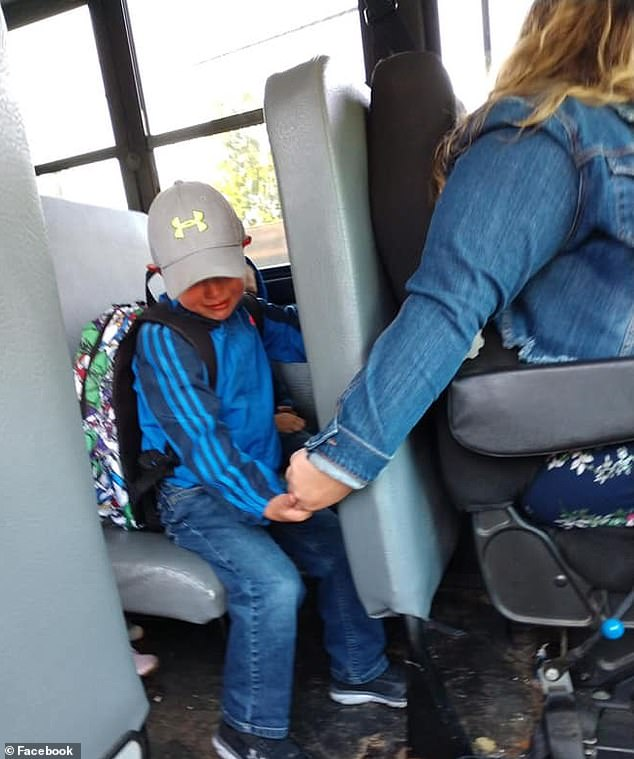 Isabel ‘Izzy’ Lane, from Wisconsin, kept holding the hand of tearful four-year-old Axel Johnson as she drove the school bus with her other hand.