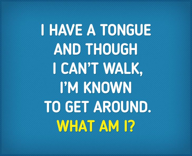 “I have a tongue and though I can’t walk, I’m known to get around. What am I?”