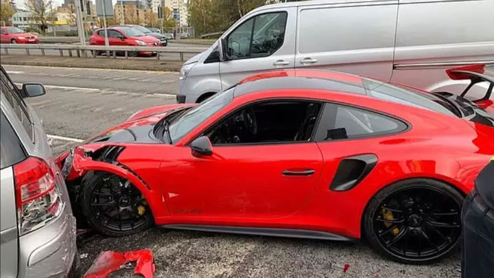 Just a mile away from the showroom, a new Porsche supercar worth £200,000 ($250,000) was smashed up in a crash.