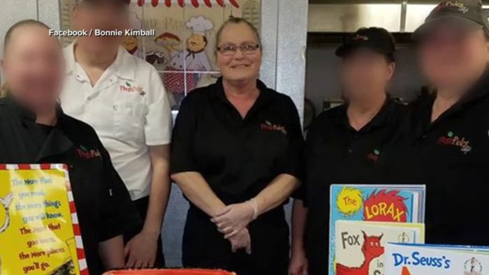 Bonnie Kimball was terminated by Cafe Services. The district manager told her: “Do you understand what you did was wrong? That was theft.”