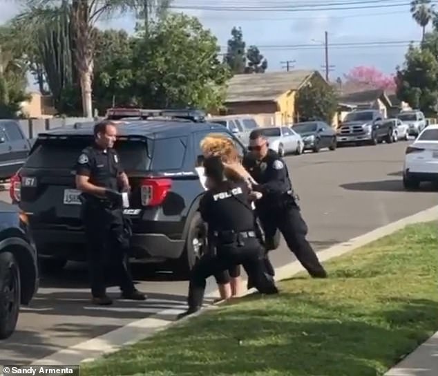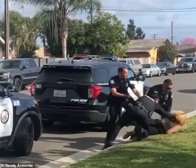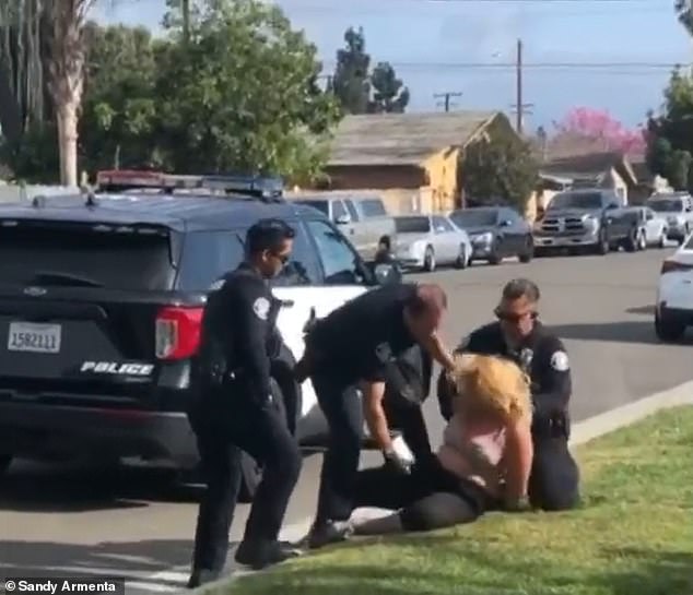 After being restrained and held down, the female had been admitted into a hospital before being booked into the Orange County jail. This scene occurs right after police officer Derek Chauvin had been admitted as guilty for his actions.