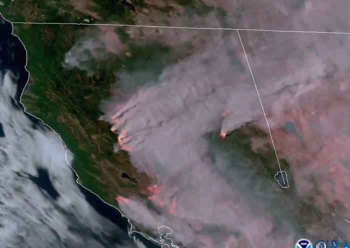 “The western US and Great Plains are shrouded under a vast area of smoke due to ongoing wildfires that extend from the Rockies to the West Coast.”