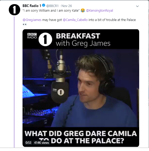 Talking about her royal visit at the royal couple’s home, Cabello, 22, admitted that she was “triple doggy dared” by BBC’s host Greg James to steal something while being interviewed on his breakfast show on Tuesday.