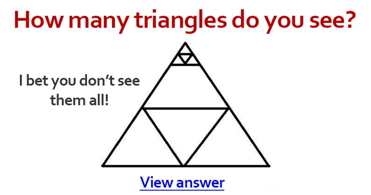 In the picture puzzle shown above, can you correctly count the right number of triangles? We promise that there are more than just a few so if you focus hard and count carefully, we certainly hope and pray you’ll see them all.