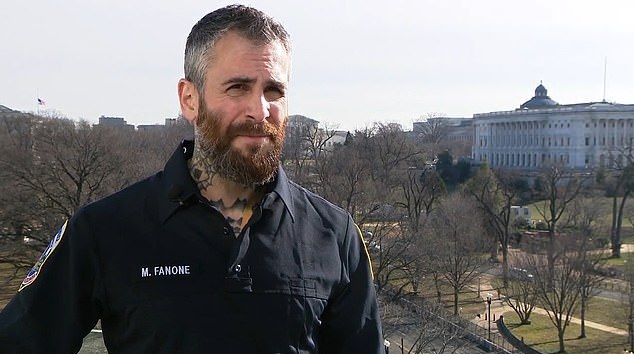 Meanwhile, Officer Michael Fanone, who is a father-of-four, said some rioters encouraged others to shoot him with his own gun after he got dragged away from the door he was securing and surrounded by the mob.