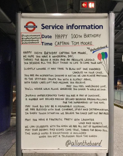Colonel Tom has received wishes and congratulations from Camilla and Prince Charles. Great Western Railway has also paid tribute to the honorary actions of Colonel Tom and announced that the train, Captain Tom Moore, would now be operating with a new name.