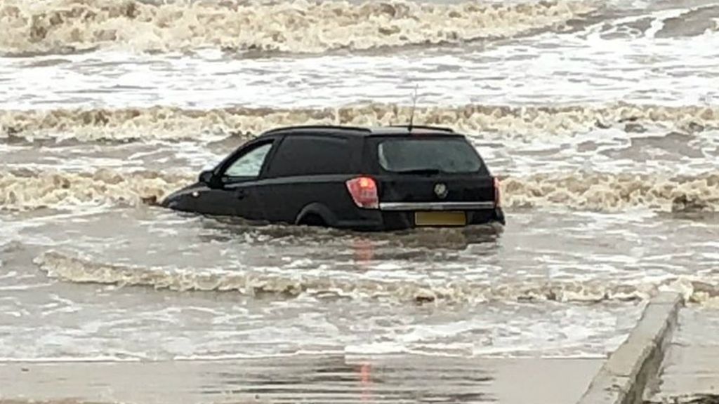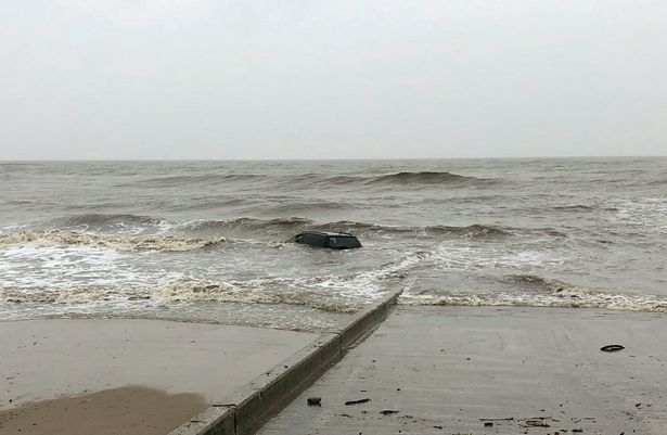Watch the video of the car floating in the water on Blackpool beach