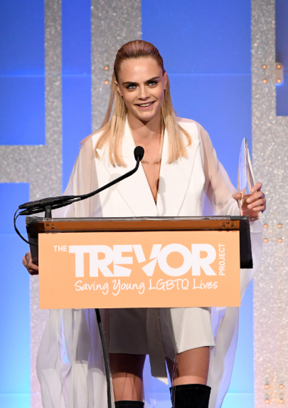 “I also have another very special woman in this room to thank and you know who you are,” Delevigne said. “She’s one of the people who help me love myself when I needed it most and I really needed it. She showed me what real love is and how to accept it, which is a lot harder than I thought.”