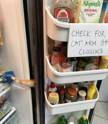 However, this playful spirit causes trouble and his new amusing game is sticking his paw through the space found between the fridge door and the fridge when it is opened.