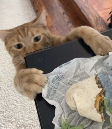 Taylor added that Carrot also loves food. He is fed three times a day by his humans. He also noted that Carrot’s breakfast comes from the auto feeder but the cat cries for his #1 dinner and then for his #2 dinner.