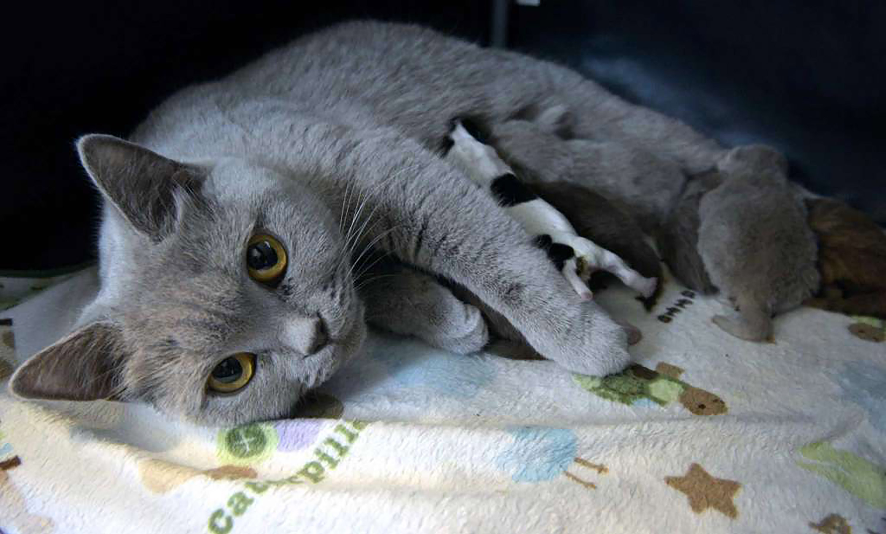 Since the first interaction, the whole cat family including the kittens has accepted Lazarus’ presence as a member of their family.