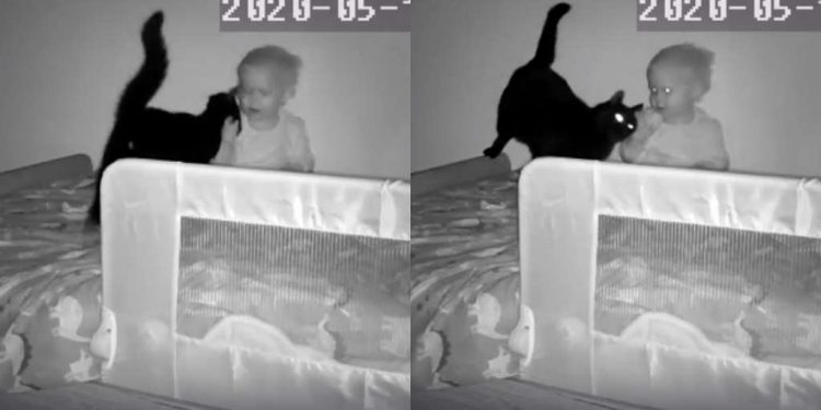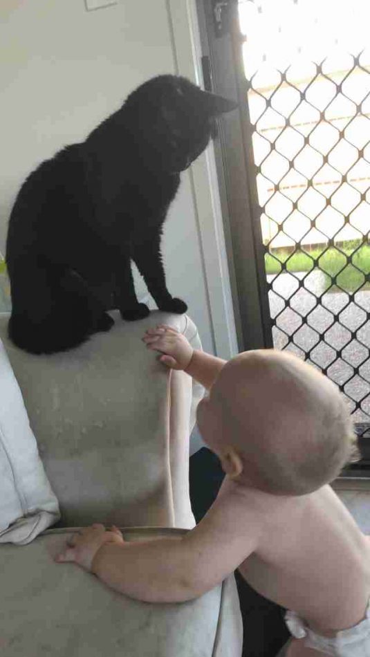 The feline’s mom, Jess Davern, told The Dodo: “He was terrified of my son when we brought him home. He would jump and run out of the room if he realized the baby was close.”