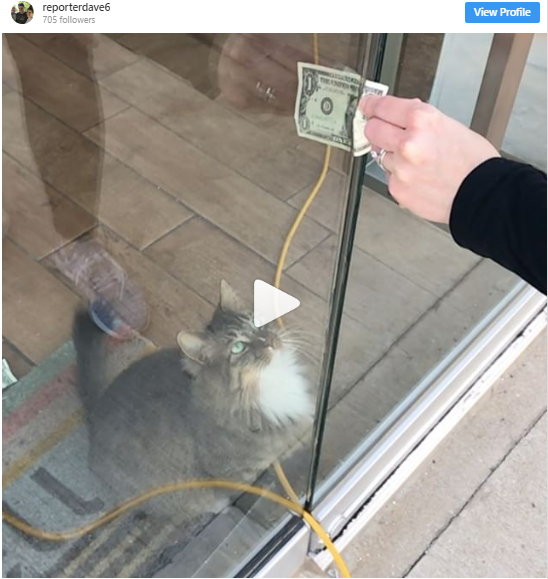 The cat, now known as the CASHnip kitty, continues to entertain and help people.
