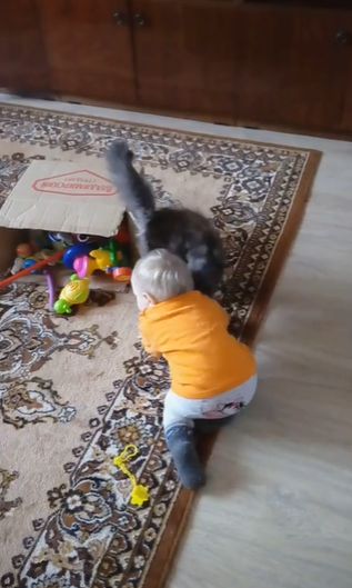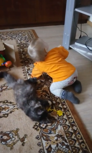 The adorable baby has just started crawling and his best friend cannot get enough of it. The cat of the family and toddler’s best friend just cannot get enough of him as it constantly keeps rubbing himself again the baby.