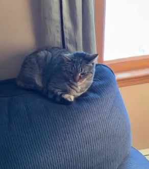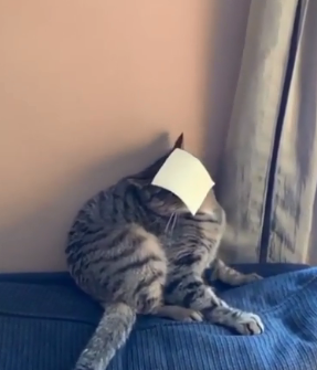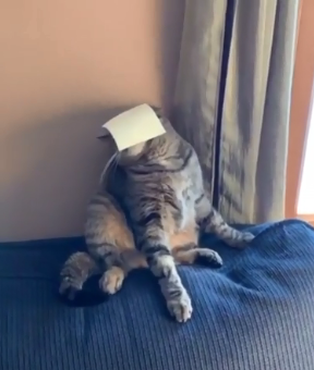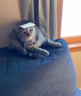 The owner of the cat who is doing the challenge and recording it, stands right in front of the cat, targeting its face. Then the slice of cheese goes flying on the head of the poor feline creature who has no idea what just happened.