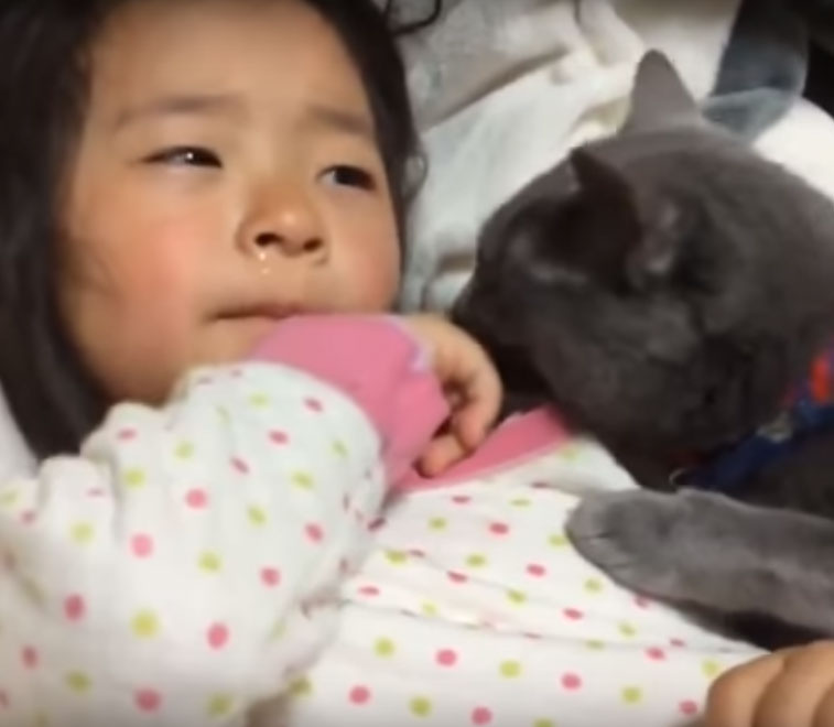 Watch the video of cat comforting little girl: