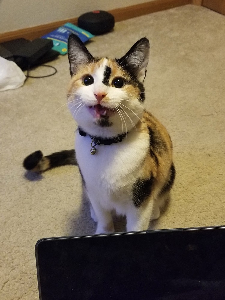 When Riebel decided to take a break from studying, she caught Nellie red-handed, so to speak, as soon as she stepped into the dining room. Nellie was primly sitting beside the half-eaten cookies at that time.