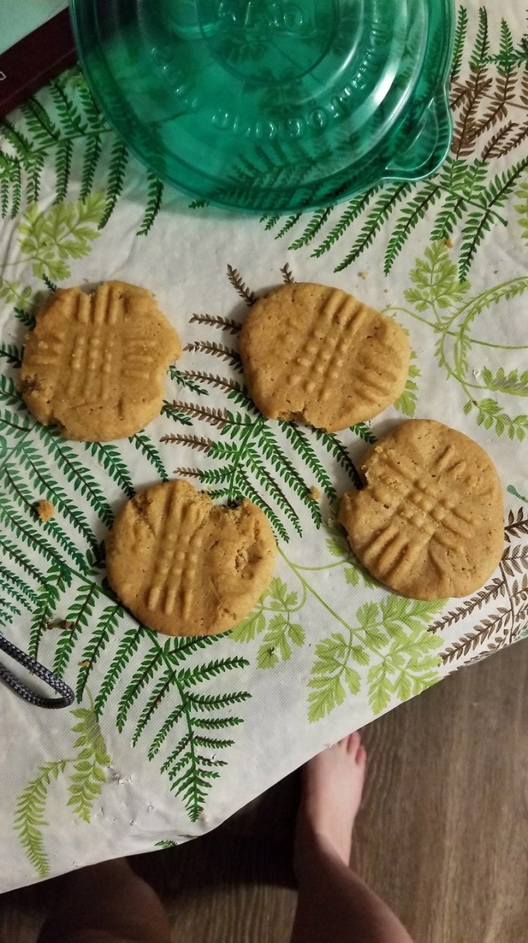 But that’s not all. As it turns out, the cat wasn’t satisfied with just laying out the cookies on the floor. She actually took a tiny bite out of every one of them.