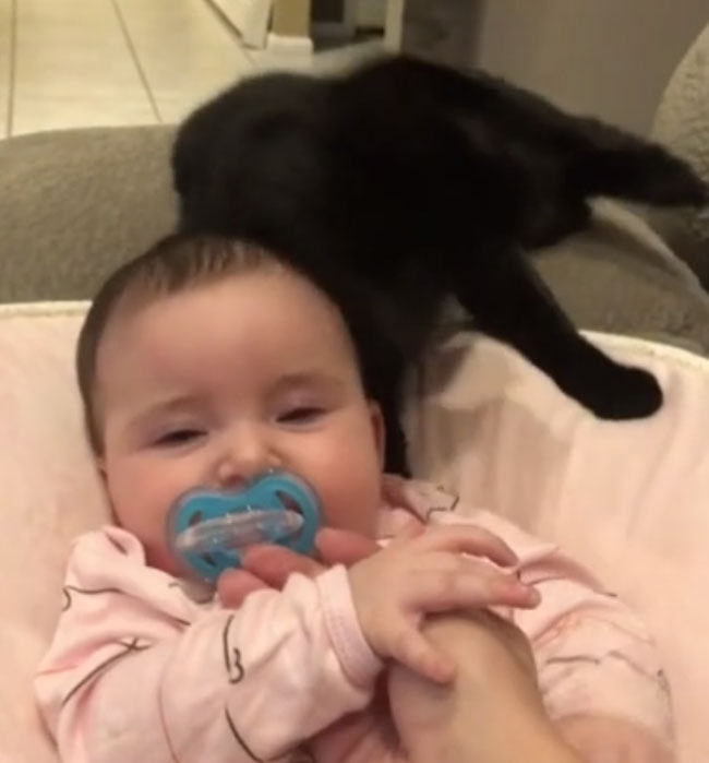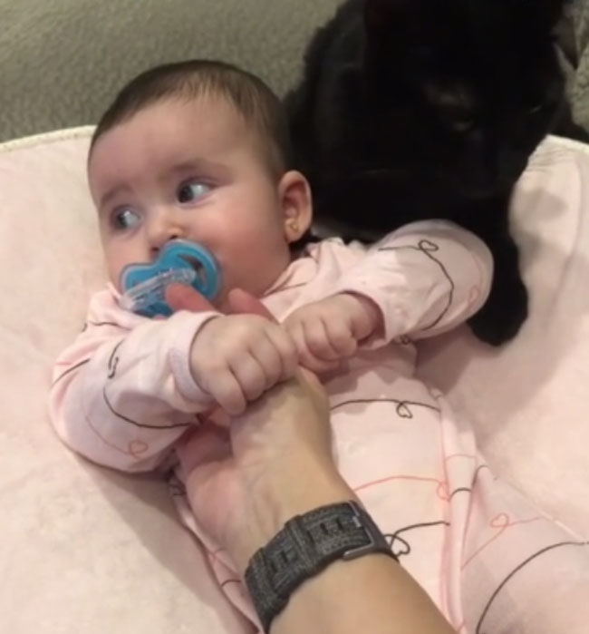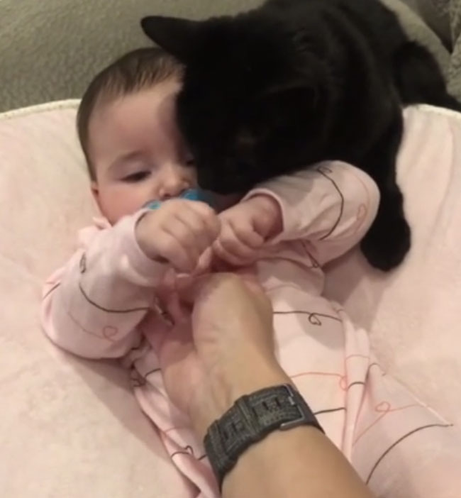 Cats, who are usually grumpy and don’t like most of the people, get along really well with babies and this video is proof.