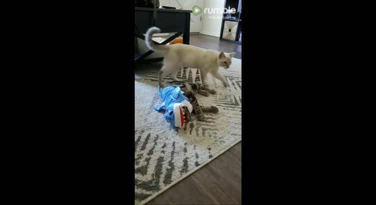 In general, dogs are okay with being dressed up but if you’ve ever owned a cat, you know that it’s another matter entirely. This particular video is no different as the owner dresses up a cat named Grandpa in a ridiculous shark costume. While his owners find the costume quite funny, Grandpa apparently doesn’t feel the same and just lays down on the floor in protest.