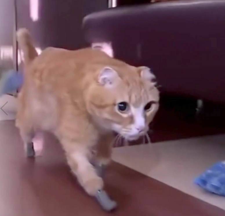 A cute cat has been fixed with a new set of titanium feet after losing the original ones to frostbite.