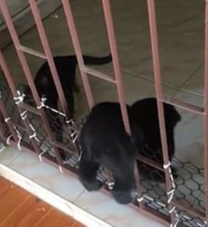 But people, as well as animals, fall in love with the creatures they live with and that is probably what happened with this pair of friends who tried to cross obstacles (Iron grill in their case) to play with each other.