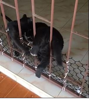 In the video, the dog, a beautiful black dog who wanted to go and play with his pal cat, tried to cross iron grills that were acting as an obstacle in between. To his bad luck, the poor baby got stuck in between and even after wiggling a little it was not able to get out.