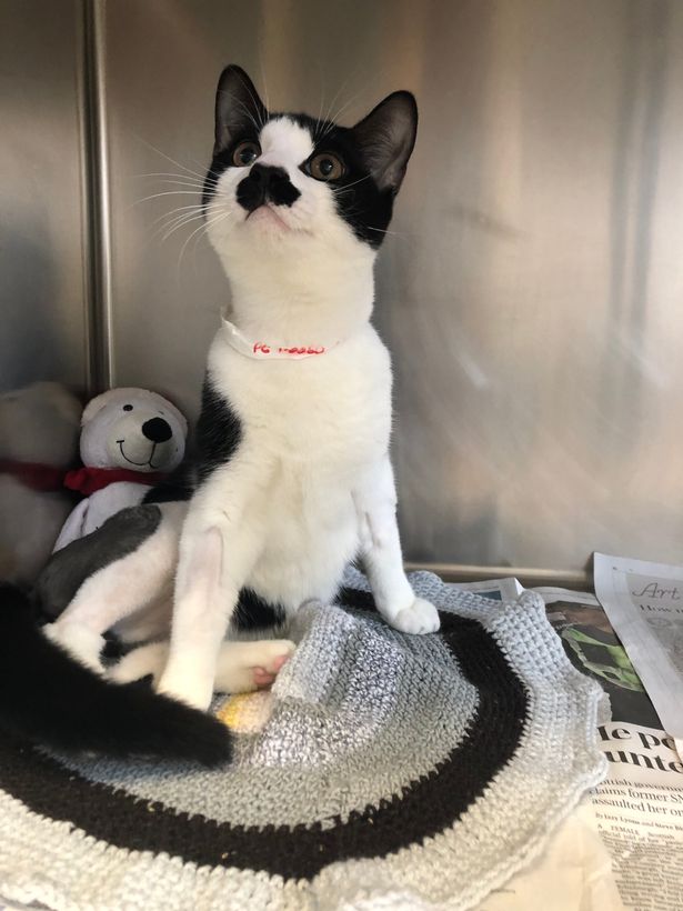 The one-year-old cat was taken to the Putney Animal Hospital in London where he is now recovering.