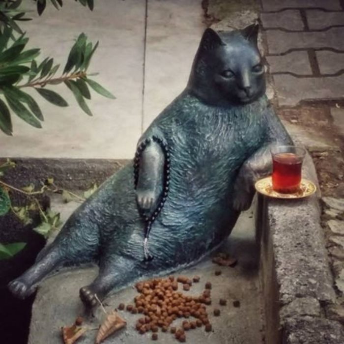 The statue, which captures his likeness, memorializes Tombili’s relaxed appearance. It is evident that he became a true inspiration to people who saw him!