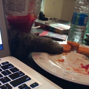 The video was filmed by the owner, who is from Orlando, Florida. The owner shared the video with the caption: “Our fluffy Persian cat named Milo hid behind my laptop, thinking I couldn’t see him. He then tried and finally succeeded in swiping a chicken nugget off of my dinner plate.”