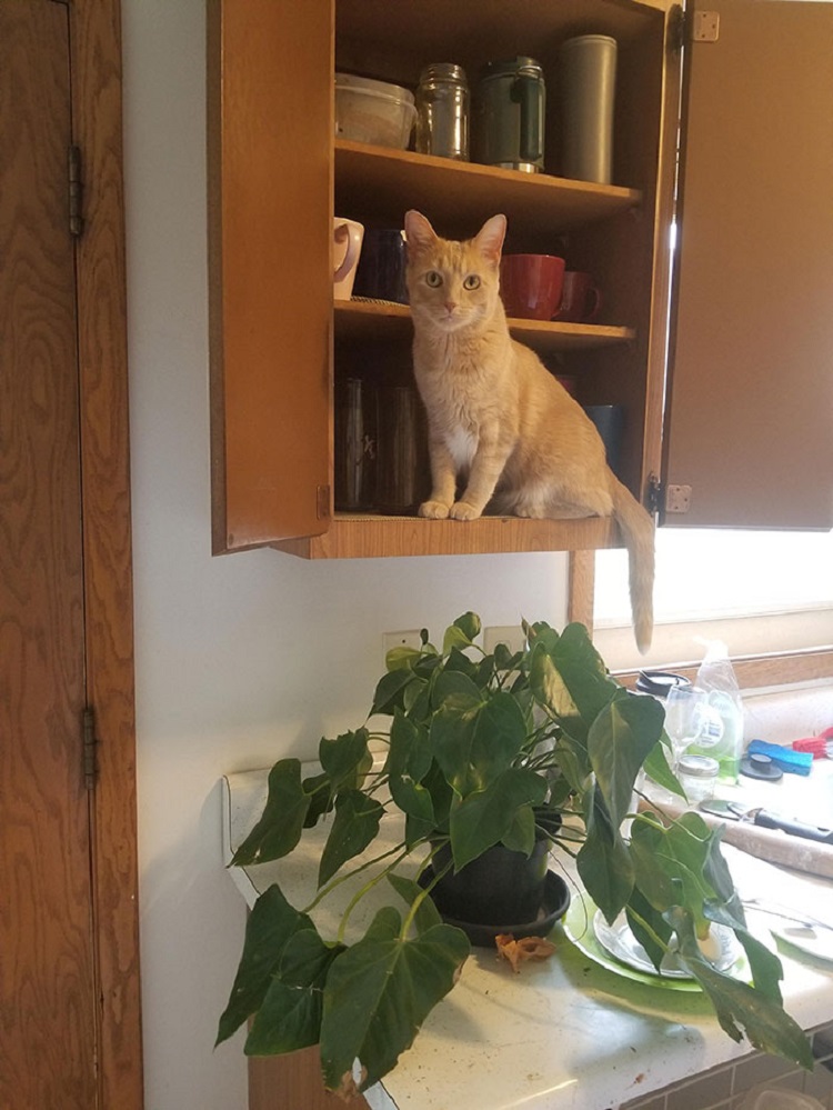 A cat owner named Sondra M. has two cats at home, Sunny and Oliver. She adopted both of them from the Humane Society and both are just gorgeous. However, Oliver has displayed a more shall we say independent streak. And the primary way that Oliver makes everyone know he’s the king of the household is by going to places where he shouldn’t.