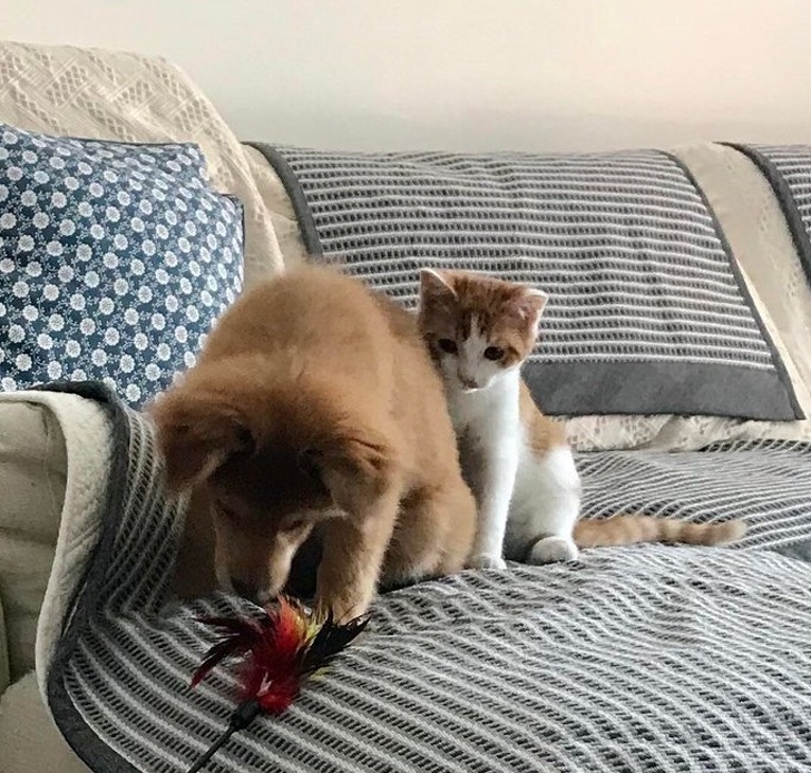 Dogs are known to be goofy and man’s best friend, while cats are known to be majestic, proud animals. But deep down, they are both furry and adorable, and they can get along together just fine!