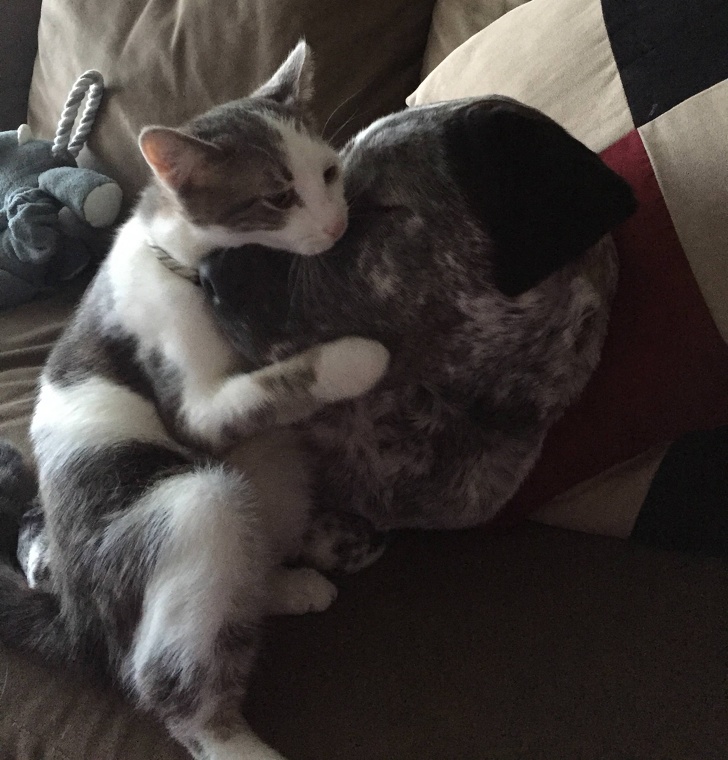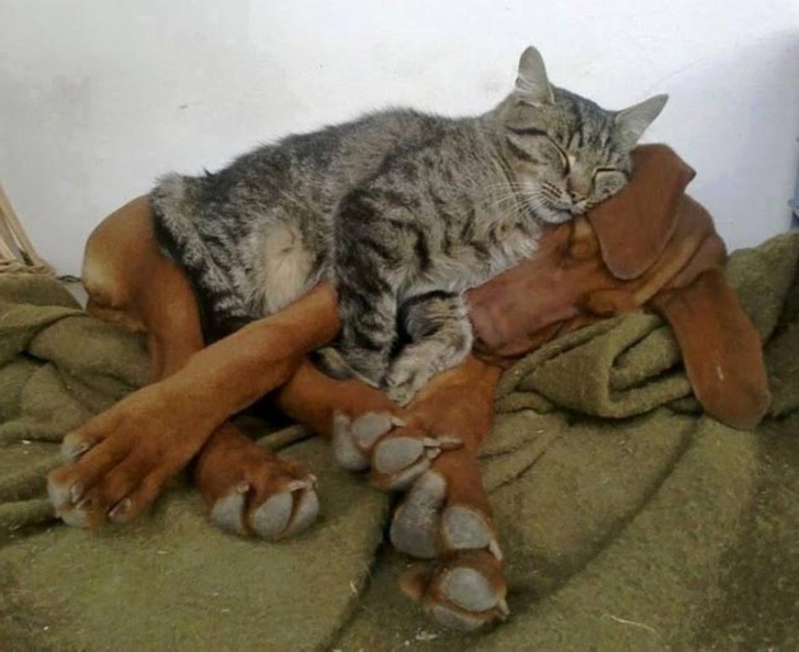Below are photos showing cats and dogs being the best of friends or even a little more than that. What’s all the same is that they just look absolutely adorable together.